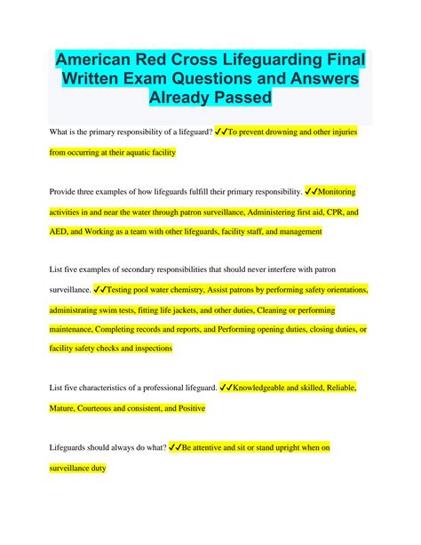 Read Online Lifeguarding Final Written Exam Answers Epub